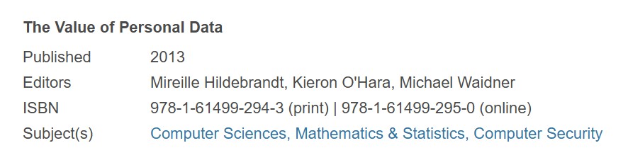 The book is divided into four parts: the individual as data manager; the individual, society and the market; big data and open data; and new approaches. These are bookended by a Prologue and an Epilogue, which provide illuminating perspectives on the discussions in between. The division of the book is not definitive; it suggests one narrative, but others are clearly possible.